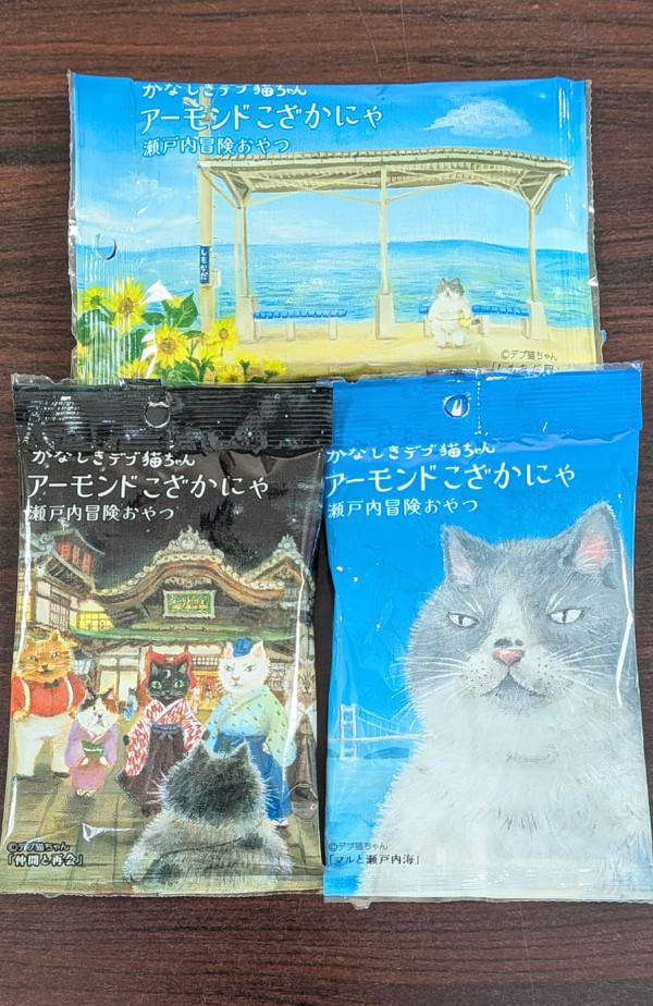 『デブ猫アーモンドコザカニャ』は、子どものおやつにも、大人の晩酌のお供にもぴったり。24袋も入っているので、「どれにしようかな」と選ぶ楽しみも倍増。道の駅やお土産屋さんでパケ買いした人が、「可愛くて美味しいから!」とリピートすることも多数。