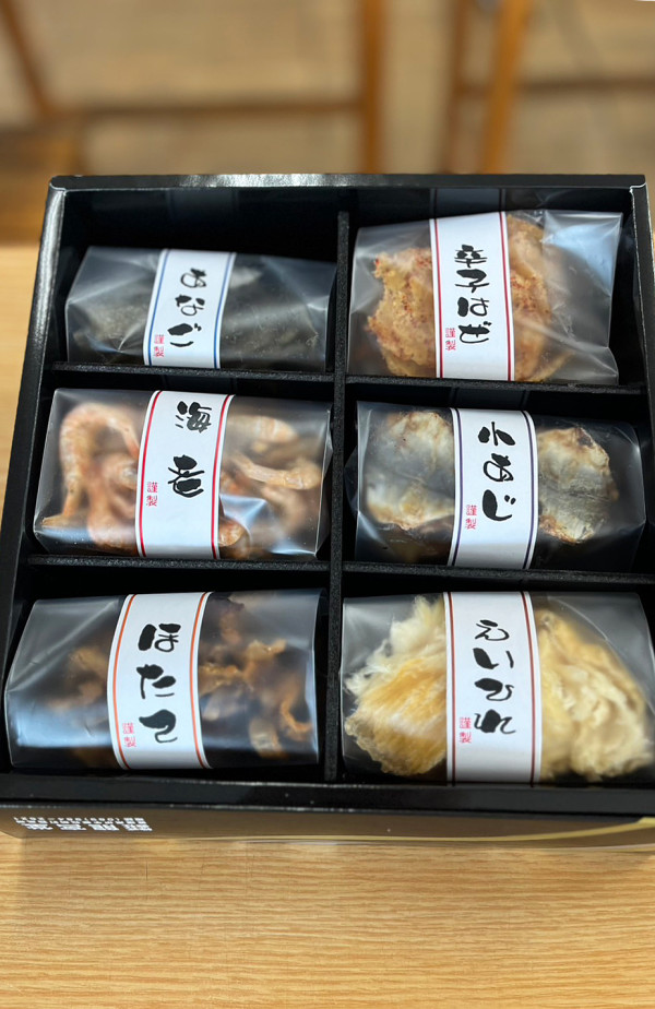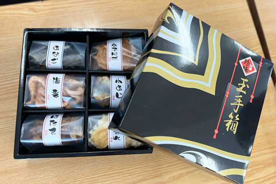 「玉手箱」に入っている珍味も、全て職人が素材を活かして手間ひまかけて仕上げています。例えばエイヒレは噛むたびにコリコリとした食感と甘辛さが口に広がり、瀬戸内海産カタクチイワシは香ばしく、骨までパリパリと食べられるほど。