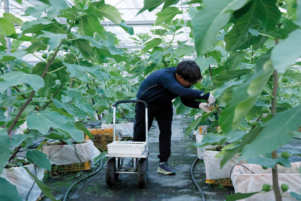 「安心して食べられるおいしさ」にこだわり、除草剤不使用の有機栽培で育てます。木を病気から守るため、ハウスでのコンテナ栽培を採用。適切なタイミングで有機肥料を混ぜ、栄養豊かな土をつくります。木の状態を見極めながら、適度に水を与えます。ちょうど良い熟し加減で収穫した「日本いちじく」は、その多くが青果として出荷されますが、ごく一部をドライいちじくに加工します。もとは、同農園が家族や親しい人の健やかな日々を願って作り始めたものでした。