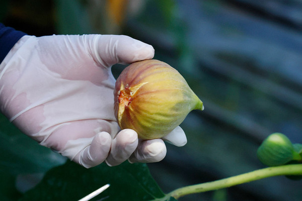 現在、国内で多く生産されているのは、西洋いちじくと呼ばれる品種です。「日本いちじく」は生産量が少ない上に、デリケートで日持ちが短いため、あまり市場に出回りません。一般に流通しているドライフルーツに使用されているのも、ほとんどが西洋いちじくです。「日本いちじく」は、蓬莱柿(ほうらいし)という品種です。蓬莱柿は古くから日本に根付いており、江戸時代には薬用植物として親しまれていました。実が小ぶりで、柔らかく、甘みが強い一方で、ほど良く酸味が感じられる濃厚な味わいが特長です。