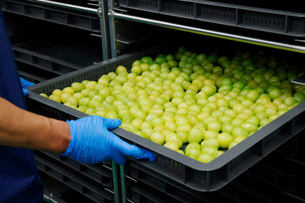 井上農園からシャインマスカットが加工場に届くと、新鮮なうちに房から実を手作業で外し、洗浄しながら状態を見て選別します。その日のうちに乾燥機に入れ、経験豊かな職人の技術で温度と時間を調整しながら仕上げます。