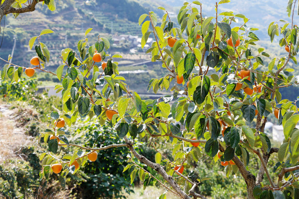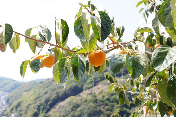 かんきつ栽培が盛んな愛媛県八幡浜市は、実は柿の名産地としても知られています。なかでも、市内の国木(くにぎ)・牛名(うじな)地区を中心に栽培される「富士柿」は、園地や農家が限られているため、全国的にも流通量が少ない希少な果実。堂々とした姿と美しい円すい形が富士山に似ていることから、その名が付けられました。