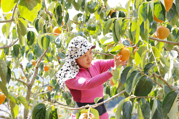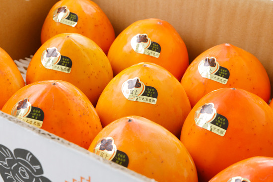 代々柿づくりを営む「丸京農園」では、「愛媛はかんきつ王国ですが、日本有数の大きさを誇る柿があることを知ってほしい」との思いで、先代から受け継いだ技術にさらに磨きをかけ、より大ぶりで甘く、形の整った「富士柿」を育てています。その大きさは、直径10センチ、重さ500グラムを超えるものも。管理を徹底した園地で収穫された果実をオリジナルブランド「媛富士」として出荷しています。