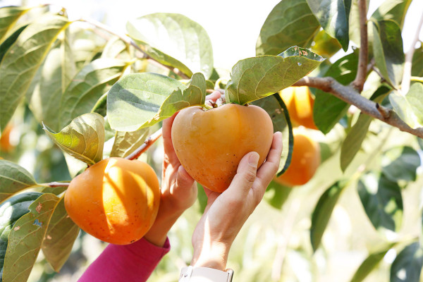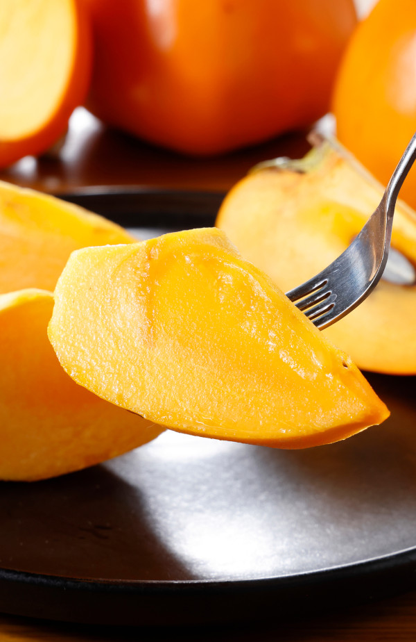 収穫された柿は、すぐにアルコールガスで丁寧に渋抜き。外気温に合わせて脱渋室の温度や日数を微調整し、生産者が舌で確かめながら仕上げます。味が整うとすぐに園地から直送されるため、届いたばかりの柿はサクッとした歯ざわりとフレッシュな甘さが広がります。2~3日おくと果肉がしっとりとして甘みが増し、まるでマンゴーのように濃厚な味わいに。さらに熟すとゼリーのようにとろけ、凍らせればシャーベット感覚でも楽しめます。ひとつの果実で味の移ろいを堪能できるのが、「媛富士」の魅力です。