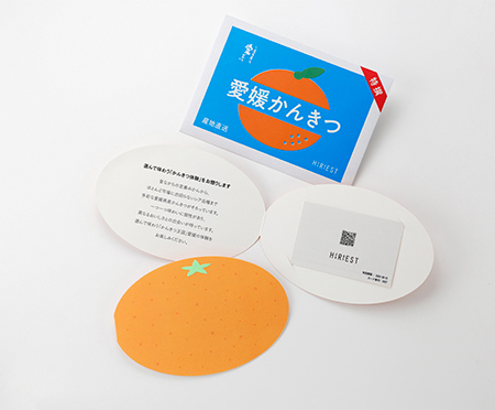 贈られた方は、ギフトカードの2次元コードから手軽にかんきつをお選びいただけます。冊子がないため荷物にならず、手渡しの贈り物に最適です。ロゴマークを入れたり、メッセージや動画などを表示させたりすることで、世界に一つだけのオリジナルギフトカードを作ることができます。